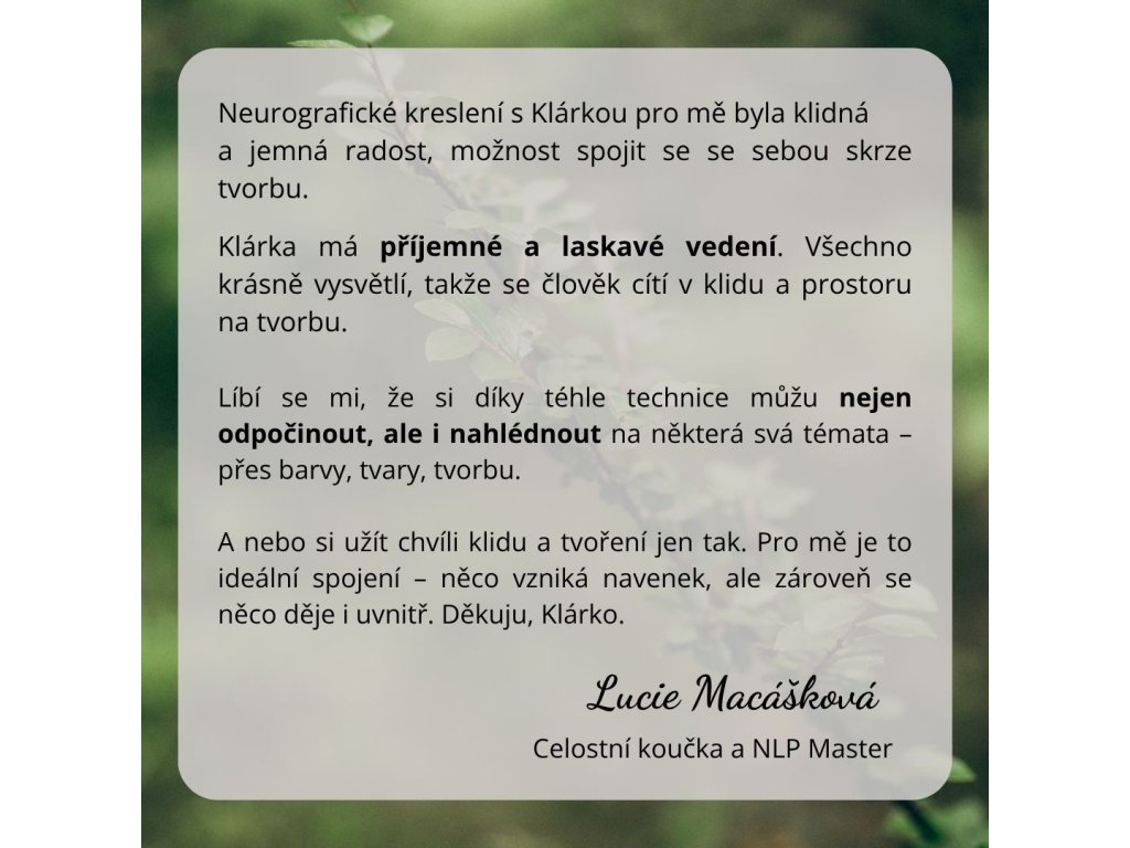 Neurografické kreslení vám nádherně vypne hlavu a vyčaruje velmi jemný a hluboký klid, zpřítomní vás.